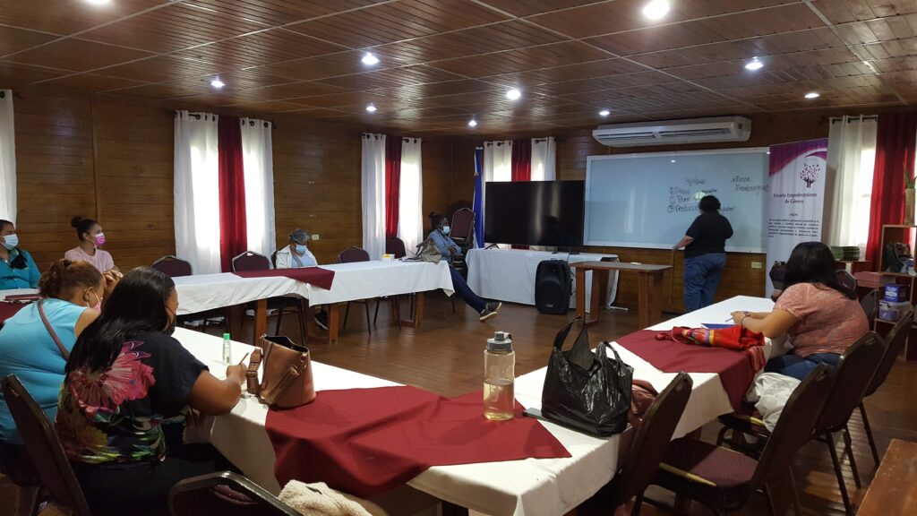 Zenia Paz; presidenta de la red de emprendedores de Atlántida, comparte una jornada de aprendizaje con las alumnas de la Escuela de Igualdad y Empoderamiento de la Mujer Rural, en esta ocasión se orientó a la capacitación teórica, en la cual las mujeres pudieron abordar todas sus inquietudes acerca de los productos que pretenden potenciar